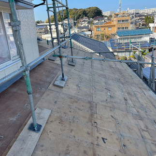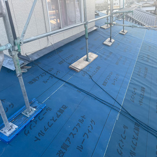 瓦を撤去した後、傷んでいた下地をすべて補修・新設。その上から防水シート(ルーフィング)を敷設し、新しい防災瓦を一枚ずつ丁寧に葺き上げました。